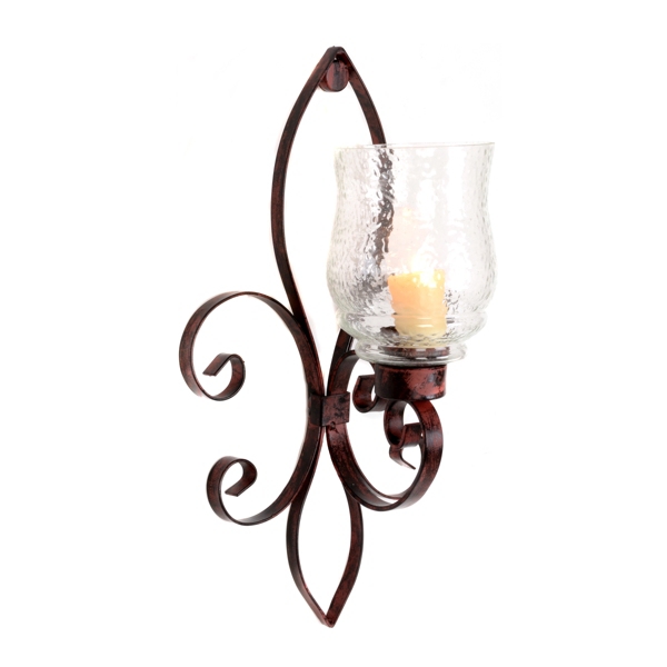 Get your hands on a few large candle wall sconces. Set of 2 iron fleur de lis wall candle holders, wall sconces, french louisana. Forged iron sconce, antique bronze finish. Light your room with shimmering candlelight from this beautiful wall sconce. A classic style is elevated by the addition of subtle fleur de lis detailing in this elegant sconce.